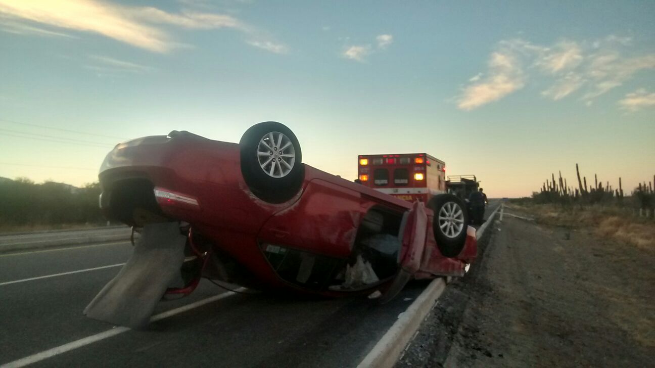 Tramo La Paz Todo Santos km 19 +600 , teniendo como resultado un choque frontal contra una vaca para posteriormente volcar el vehículo Marca Nissan Sentra color rojo modelo 2013, quien era conducido por una persona del sexo masculino, resultando con lesiones no graves, solo una mujer pero l no requirió traslado al hospital, en el lugar de los hechos llego las fuerzas policiacas a hacerse cargo del incidente y acudieron el grupo de voluntarios socorristas «Grupo Calafia» para auxiliar a la accidenta.