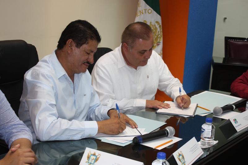 El secretario del Trabajo Gustavo Hernández Vela Kakogui y el alcalde Armando Martínez Vega, firmaron una cuerdo de coordinación para llevar a cabo acciones conjuntas que vengan a fortalecer los programas de promoción del empleo.