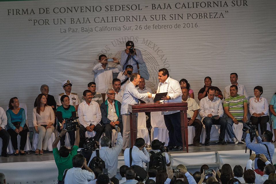 Hagamos de Baja California Sur, un Estado que sea un ejemplo de México en desarrollo social, afirmó el gobernador Carlos Mendoza Davis, al firmar el acuerdo “Por Un Baja California Sur Sin Pobreza” junto con el secretario de Desarrollo Social, José Antonio Meade Kuribreña.