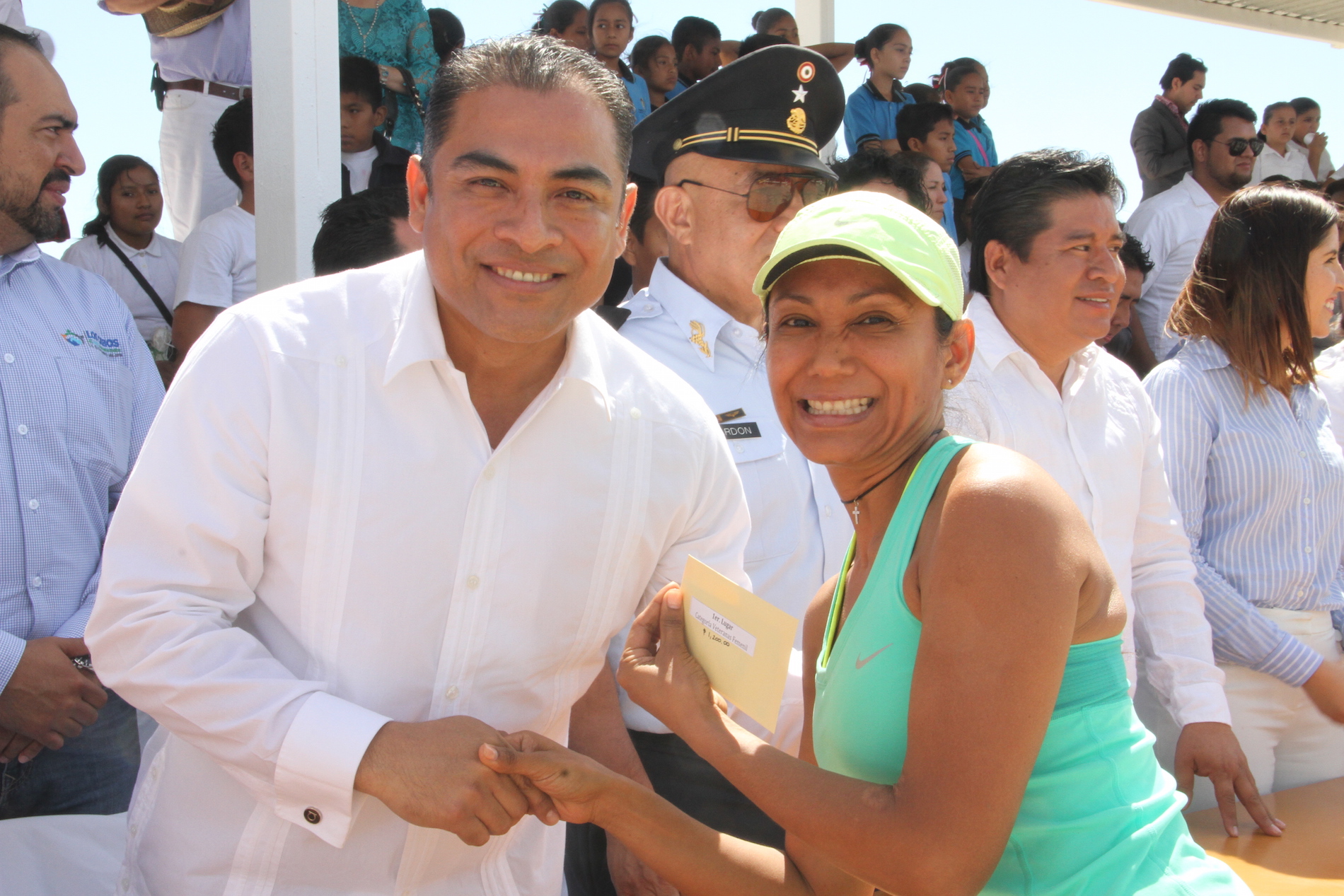 Los Cabos, B.C.S.- Dentro de las festividades que organizó el XII Ayuntamiento de Los Cabos con motivo al Mes de la Bandera Nacional, se llevó a cabo la Carrera Pedestre denominada “Ascenso al Cerro de la Bandera”, en Buena Vista, delegación de Santiago; correspondiéndole al Alcalde Arturo De la Rosa Escalante y autoridades municipales entregar los premios en efectivo a los ganadores de los 3 primeros lugares.