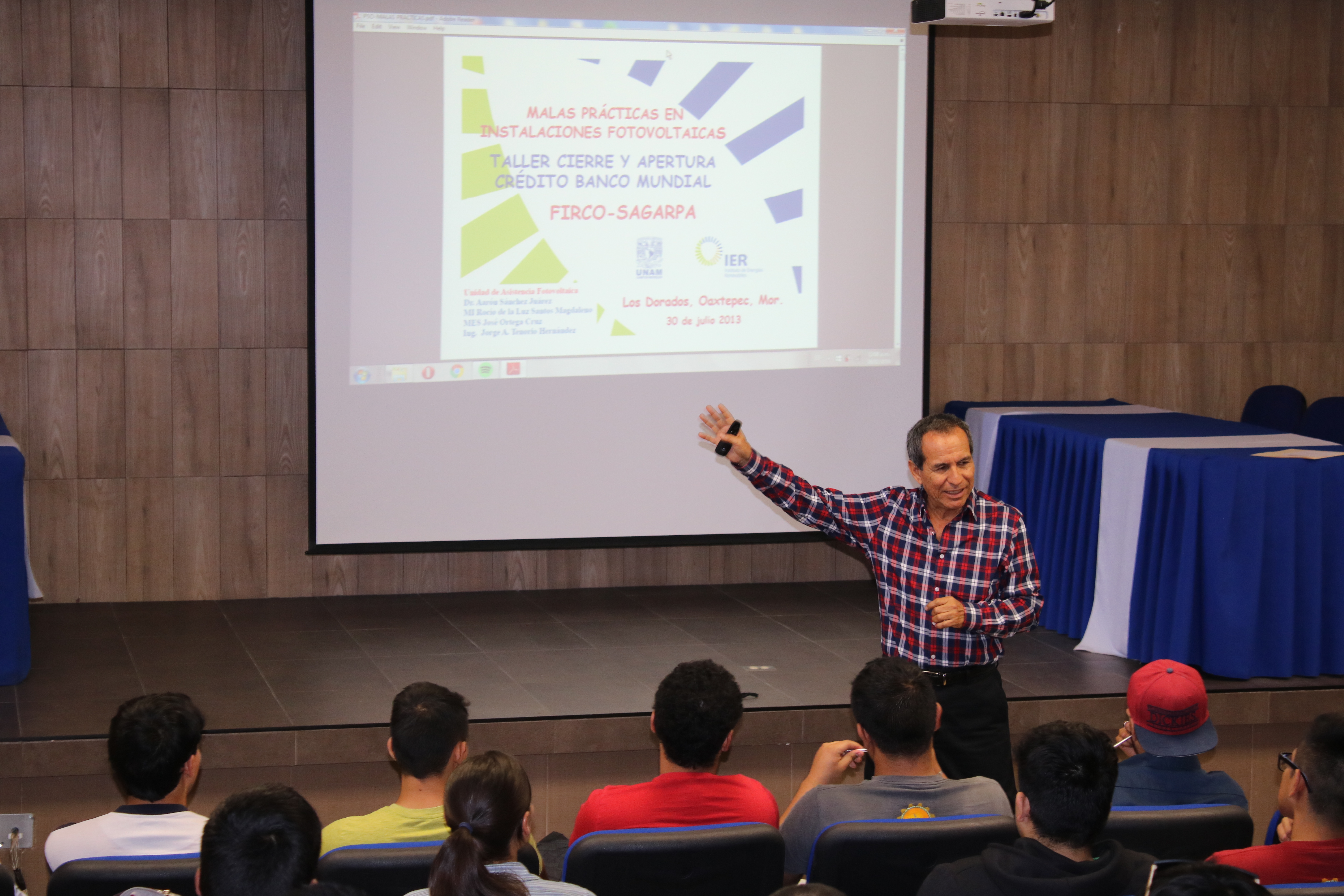 Recientemente, un grupo de estudiantes de Ingeniería en Fuentes de Energía Renovables de la UABCS recibieron una plática por parte de un especialista dedicado al rubro de las energías renovables, con la intención de identificar las malas prácticas al momento de realizar instalaciones eléctricas, como paneles solares. El objetivo de la charla fue que los universitarios tuvieran un acercamiento con este tipo de problemas técnicos.La plática corrió a cargo del Ingeniero Mecánico Octavio Orozco, quien actualmente trabaja en una empresa local enfocada a las fuentes de energías renovables y, quien además, cuenta con 25 años de experiencia en el rubro.