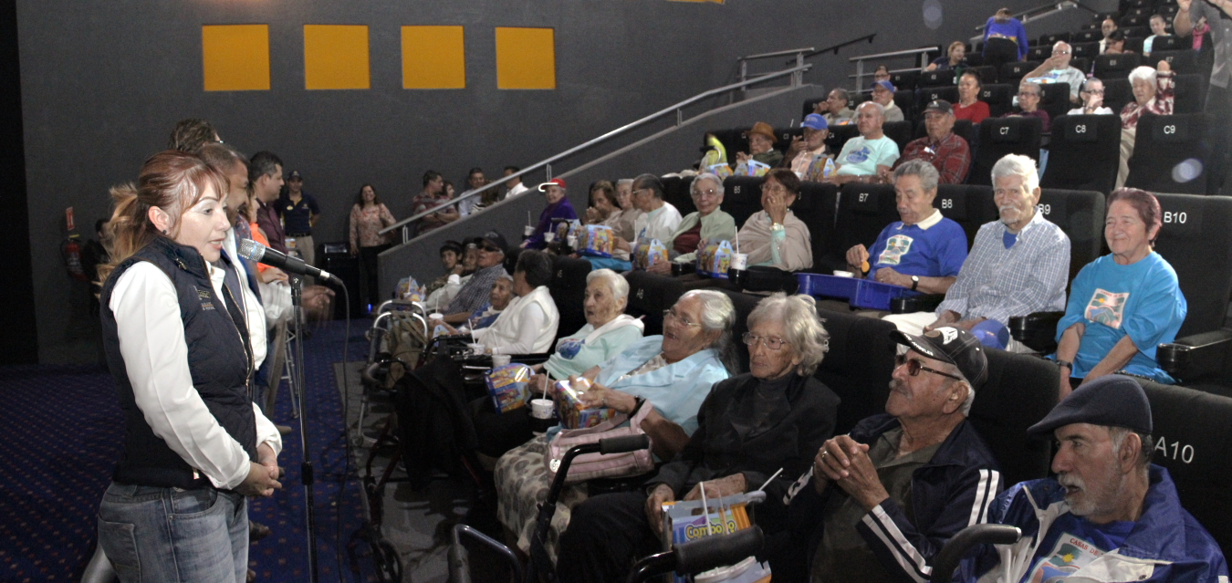 A través la conformación del patronato de las Casas de Día, vamos a garantizar que nuestros adultos mayores tengan acceso a diversas actividades culturales y de esparcimiento a través de coordinaciones interinstitucionales dijo la Presidenta de DIF Municipal Alma Rosa Gerardo de Martínez, en el marco de la función de cine para adultos mayores y familiares la cual fue patrocinada por la empresa CINEPOLIS.