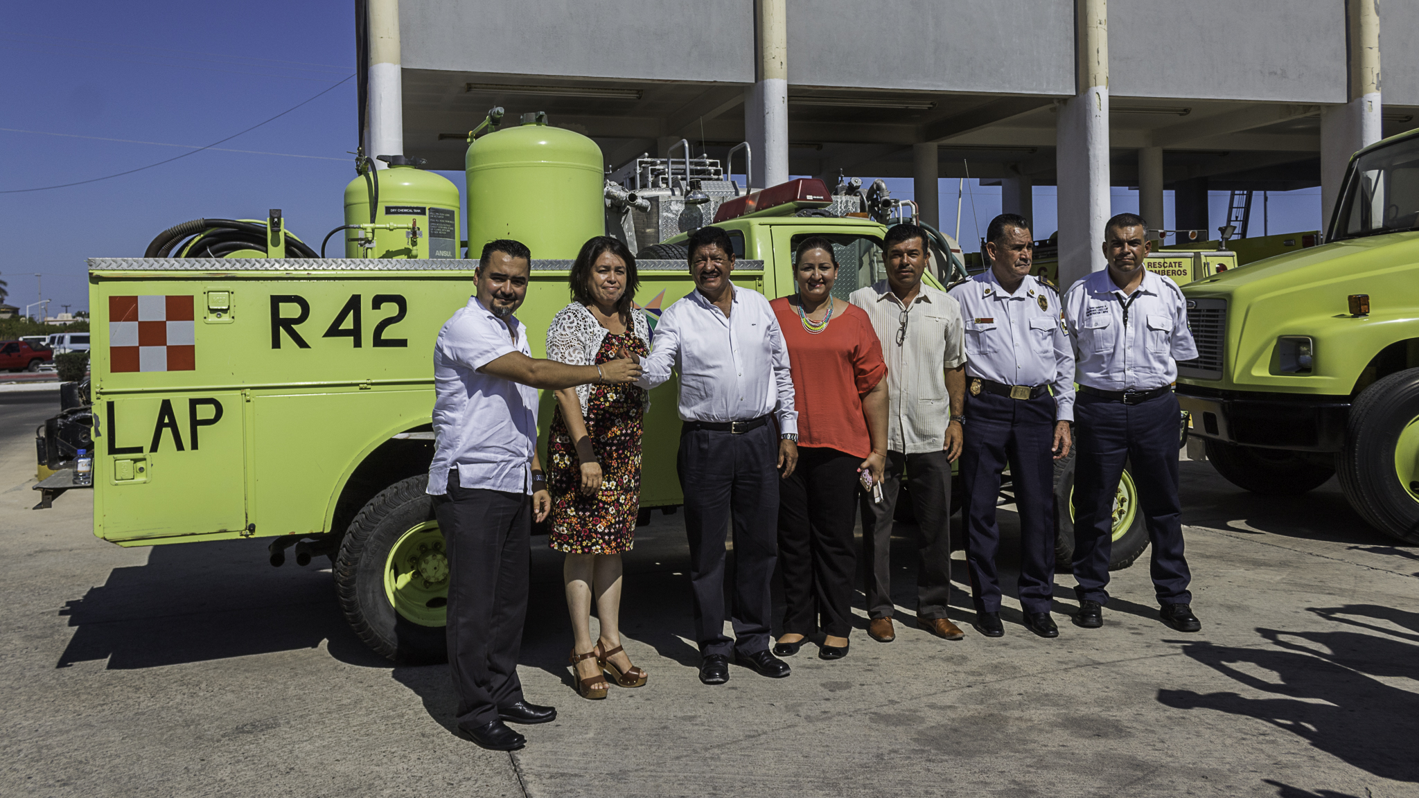 A fin de garantizar la eficacia en los servicios que prestan los Bomberos, hemos mantenido las gestiones y la colaboración de acciones con diversas instituciones y asociaciones, por lo que hoy se logra la donación de cuatro vehículos de extinción y rescate por parte de la administración del Aeropuerto Internacional de La Paz, misma que vendrá a reforzar la labor diaria que esta corporación realiza, comentó el Alcalde, Armando Martínez Vega.
