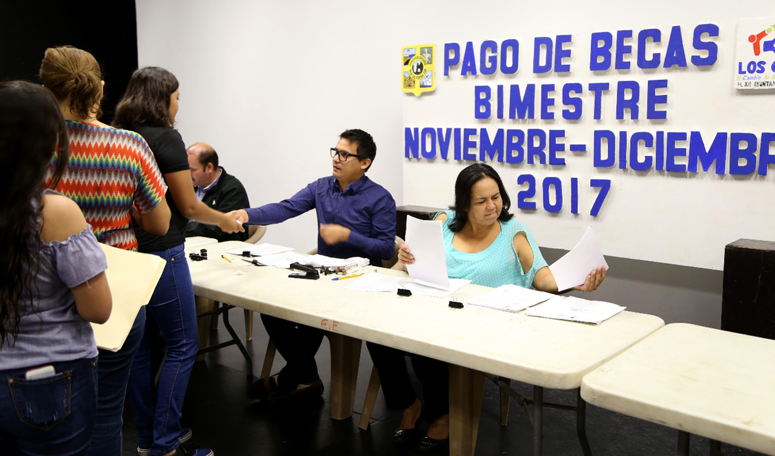 Entregando el último bimestre del ejercicio fiscal 2017, donde se entregó más de 1 millón 800 mil pesos en becas para los estudiantes que han cumplido con los requisitos que solicita el Gobierno Municipal para estos apoyos, el cual se incrementó hasta un 20 por ciento más de lo que ya se venían entregando anteriormente.