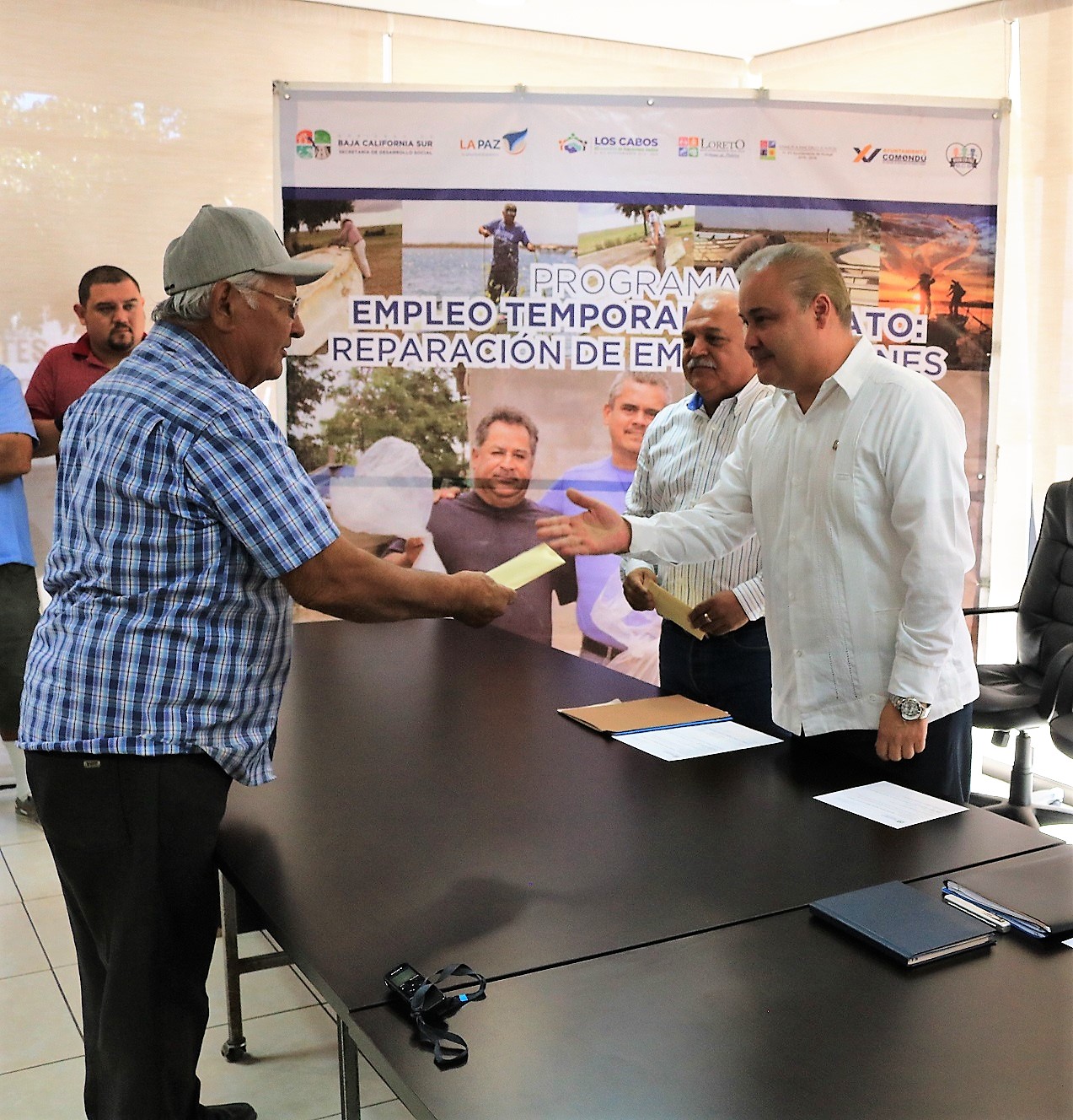 Con el propósito de apoyar a las familias de pescadores de La Paz y Chametla, que se dedican a la pesca comercial o ribereña que vieron disminuidos o afectados sus ingresos directa o indirectamente por la tormenta tropical Lidia, Gustavo Hernández Vela Kakogui, Secretario del Trabajo y Desarrollo Social (STDS), entregó recursos del Programa de Empleo Temporal Inmediato, que implementó el Gobierno del Estado para apoyarlos en la reparación de sus embarcaciones.