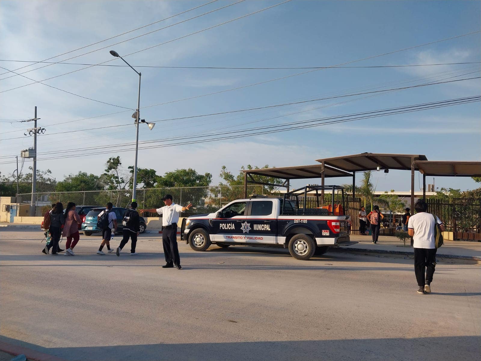 Los Cabos, B.C.S. 15 de julio del 2023.- Con la finalidad de cuidar la integridad de la comunidad estudiantil del municipio de Los Cabos, el director general de Seguridad Pública, Policía Preventiva y Tránsito Municipal mantiene la presencia de elementos seguridad en diversos planteles educativos de la entidad.