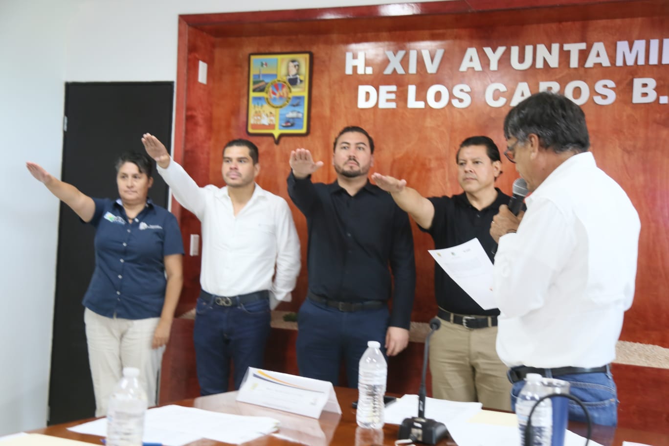 Asimismo, se llevó a cabo la toma de protesta de las personas servidoras públicas que fueron integradas a la Junta de Gobierno; el tesorero municipal el XIV Ayuntamiento, Cristopher Albertini Camacho, el titular de la Oficialía Mayor, Carlos Alberto Beltrán Olmeda y el director general del Sistema Municipal DIF, Sergio Armando Sánchez Lizárraga, así como la directora del Tecnológico Nacional de México campus Los Cabos, Tamara Montalvo.