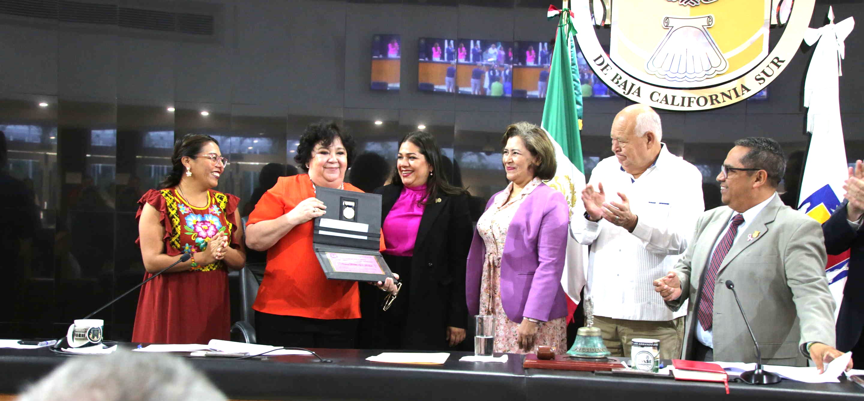 Por su parte la diputada presidenta de la Comisión de Igualdad de género, diputada María Luisa Ojeda González, en su turno hizo una retrospectiva histórica de la vida y trayectoria de María Dionisia Villarino, al igual que el diputado Rigoberto Mares Aguilar, destacando que la entrega de esta presea, reivindica el papel transformador de la mujer sudcaliforniana en la vida pública del estado, como una genuina expresión de libertad y democracia.