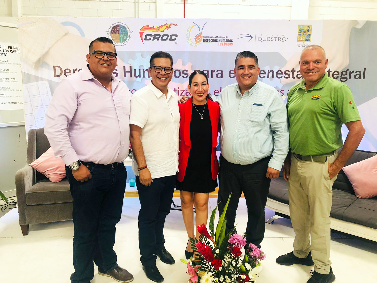 Los Cabos, B.C.S., 06 de diciembre 2023- El XIV Ayuntamiento de Los Cabos que preside Oscar Leggs Castro a través de la Coordinación Municipal de Derechos Humanos en conjunto con Grupo Questro y la Confederación Revolucionaria de Obreros y Campesinos CROC, llevaron a cabo la inauguración del simposio Derechos Humanos para el Bienestar Integral «Con derechos garantizados el bienestar es asegurado», celebrado el 06 y 07 de diciembre del presente año.