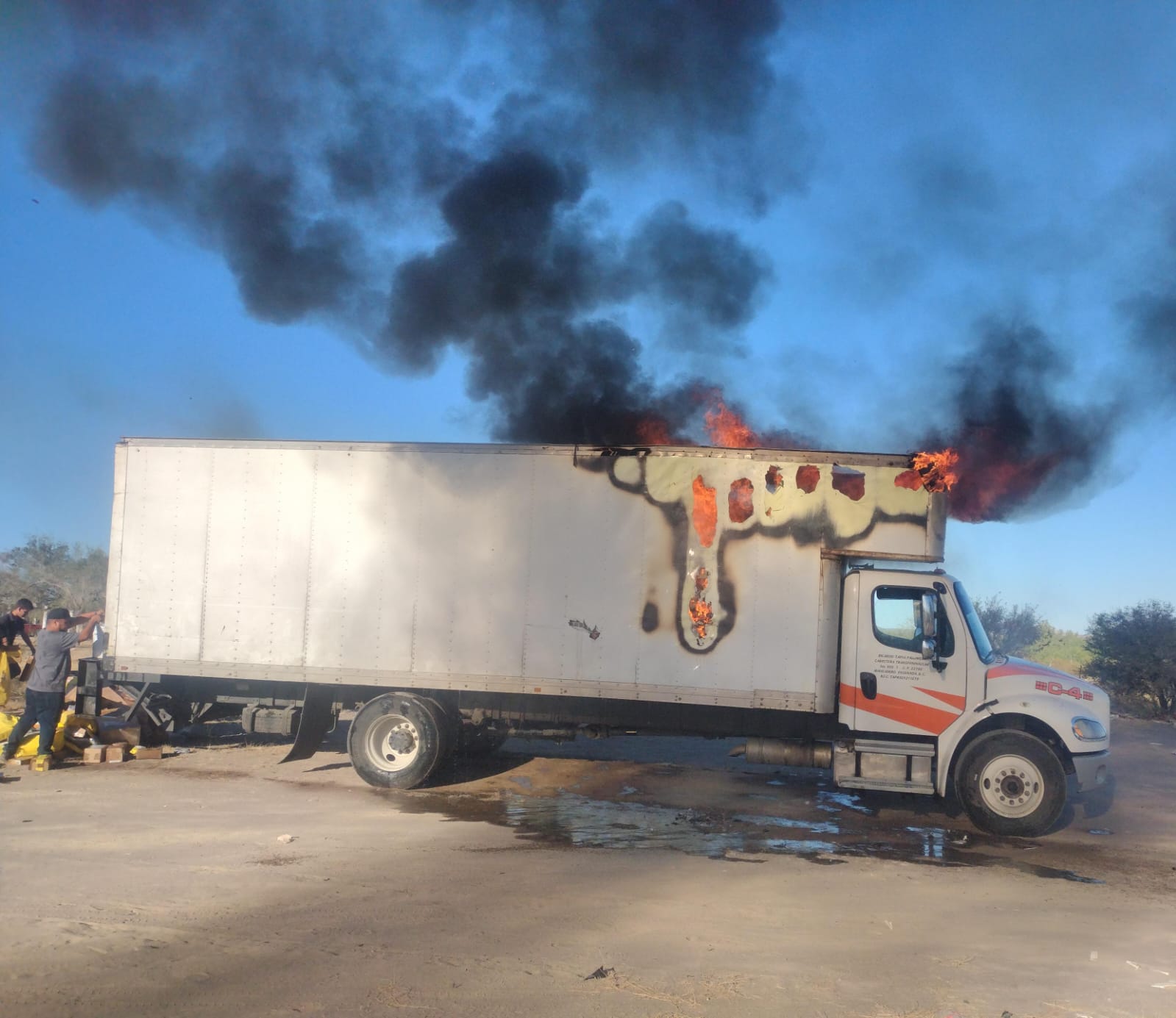 La Paz, BCS.- En el poblado de Las Pocitas, un incidente llamó la atención de las autoridades locales el pasado 5 de Enero del 2024. Según la información proporcionada, la delegación de Los Dolores recibió un aviso telefónico a las 16:20 horas, alertando sobre un camión que se encontraba en llamas. Al llegar al lugar, la escena era caótica, con un camión con fuego en la parte de la caja y vecinos tratando de sofocar el incendio con agua.