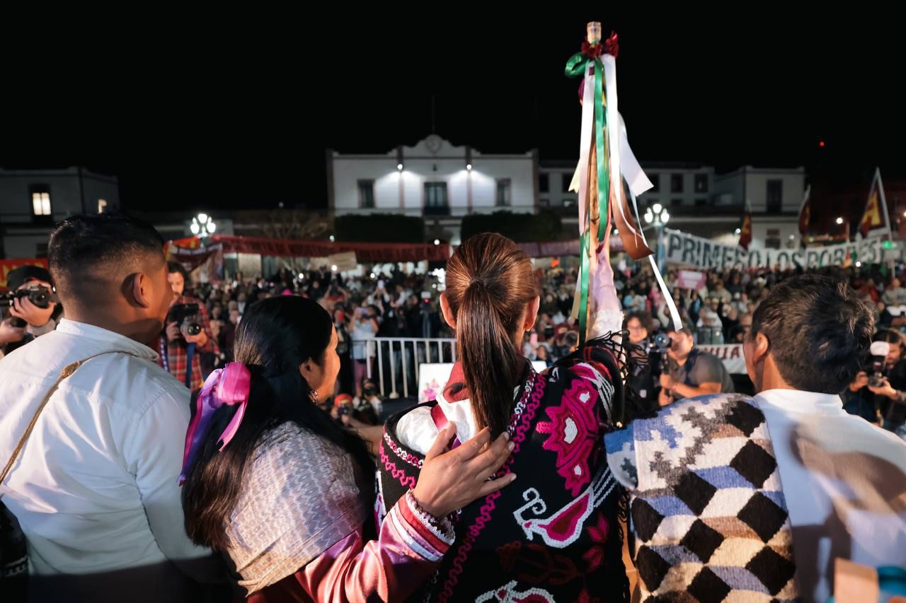 • ‘’No se olvide de los pueblos originarios, de los pueblos mazahuas, de los pueblos otomíes para que siga esta transformación para este país’’, comentaron representantes de los pueblos originarios al hacer entrega del bastón de mando