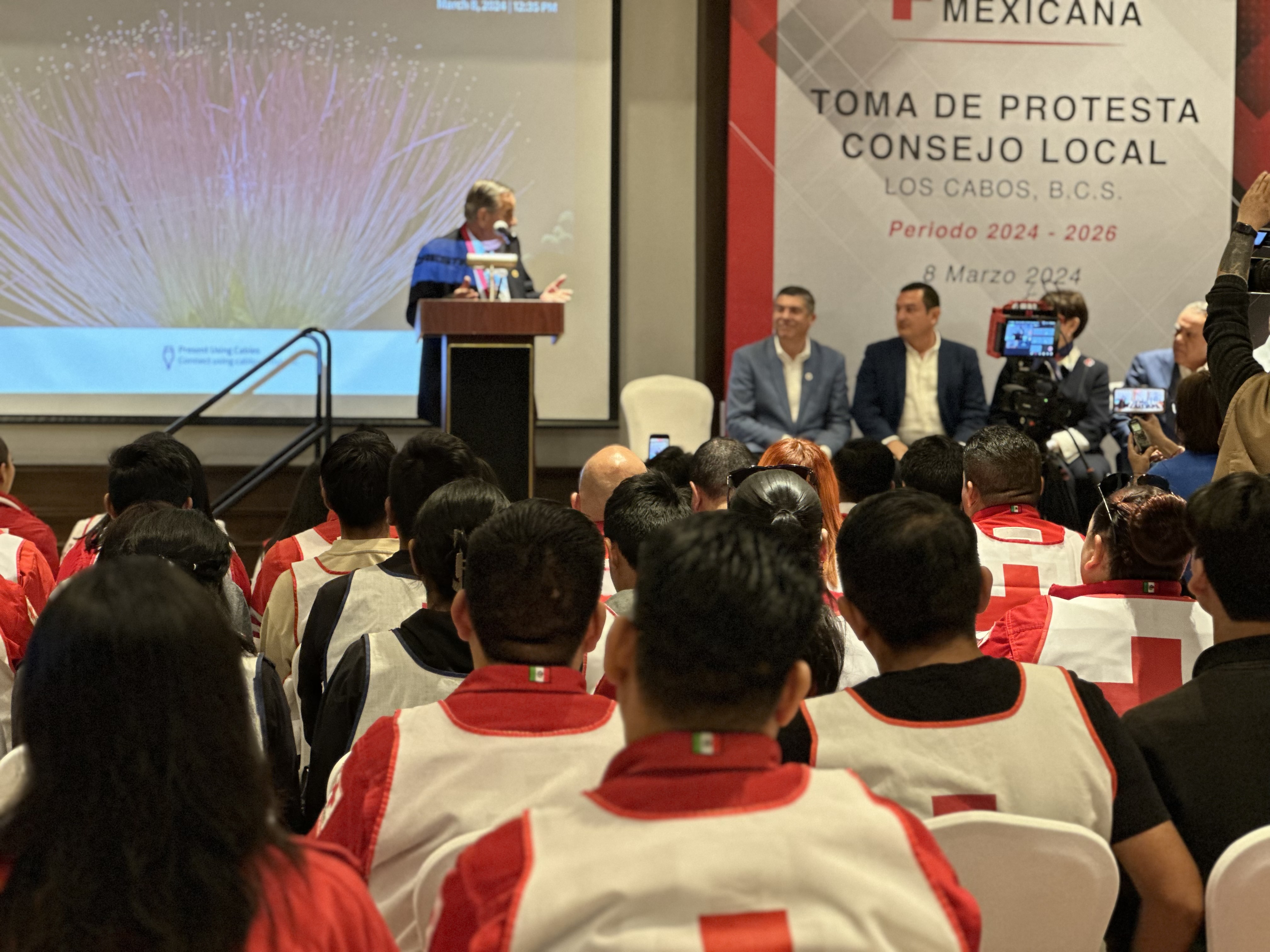 En Los Cabos, B.C.S., el 13 de marzo. La Cruz Roja Mexicana llevó a cabo la toma de protesta del nuevo Consejo Local para el período 2024-2024, así como la designación del nuevo presidente, el Lic. Víctor Saúl Fonseca Espinoza, quien asume la responsabilidad de salvaguardar la vida de la ciudadanía cabeña.