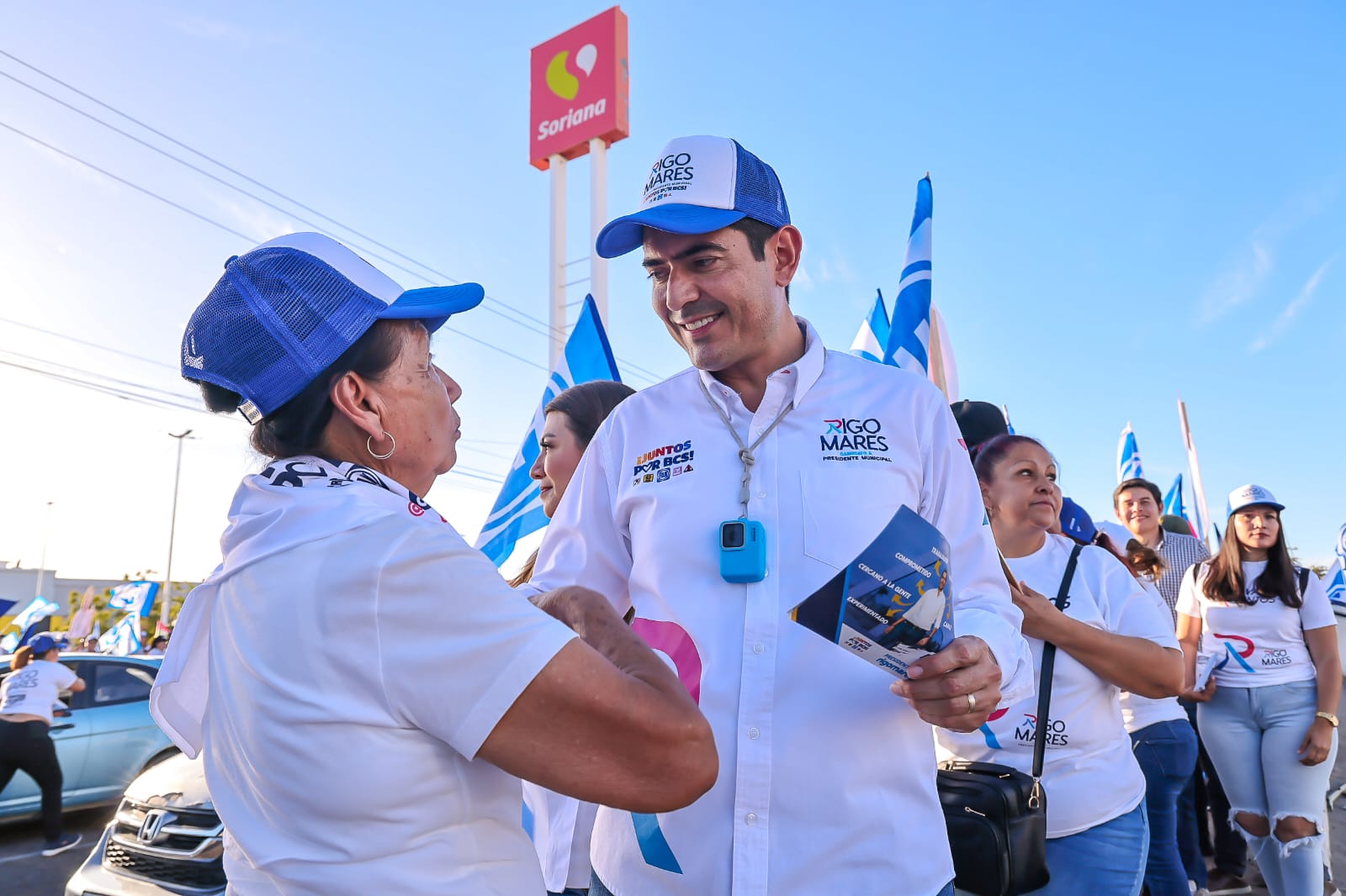 La Paz, Baja California Sur.- Rigo Mares, candidato a la presidencia municipal se comprometió a entregar, a partir del primer año de gobierno, el bono del Día del maestro y el bono del Día del personal administrativo del sector educativo.
