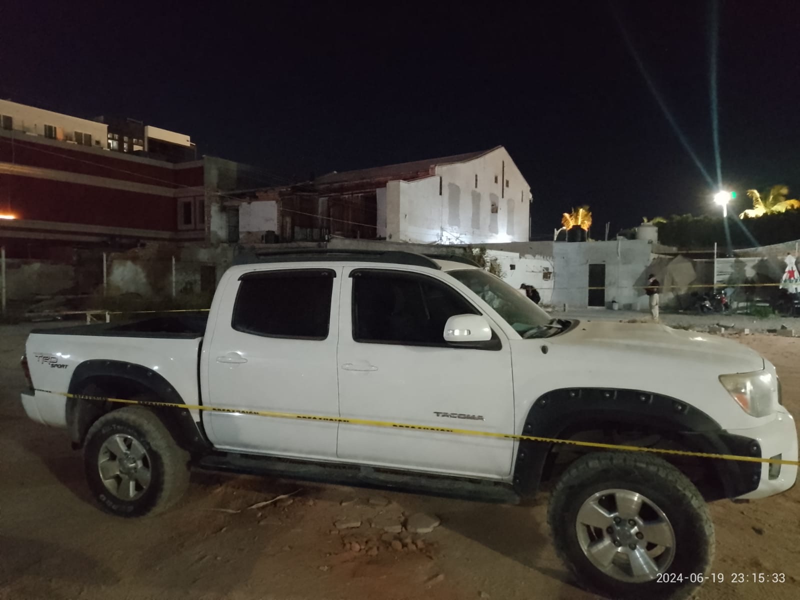 En el lugar de los hechos se localizó un casquillo percutido a 5 metros de una camioneta Pick Up Tacoma blanca del año 2013. Al inspeccionar el vehículo, se encontraron manchas que podrían corresponder a sangre y dos dientes humanos.