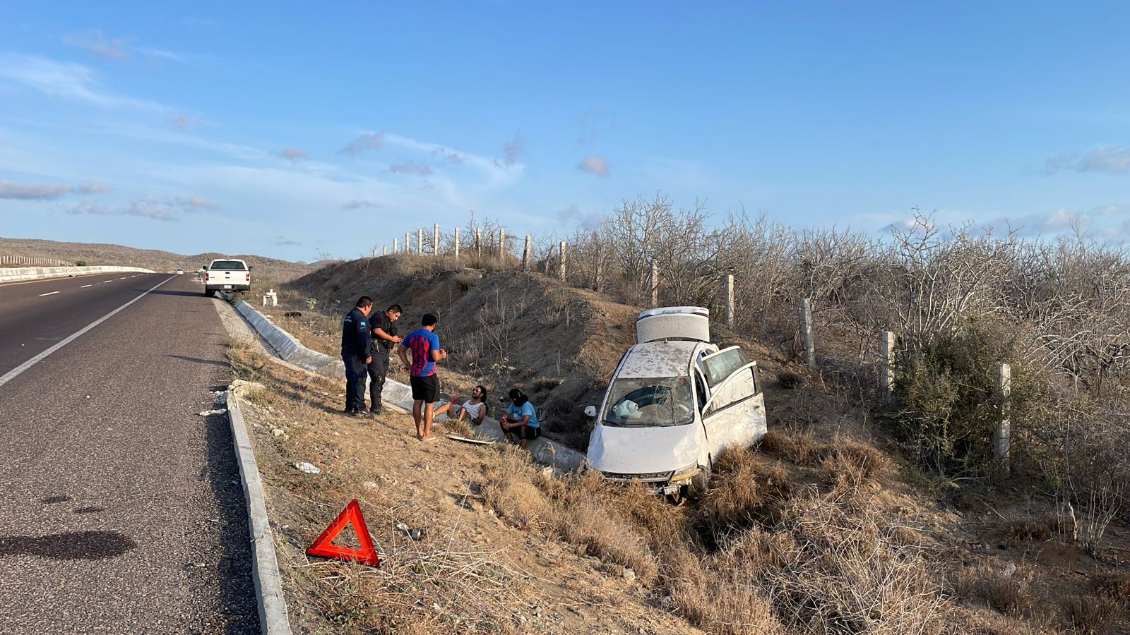 El Pescadero, Baja California Sur. 01 de agosto de 2024. Un accidente de carretero se registró este miércoles a las 17:40 horas en el kilómetro 85 del tramo carretero Elías Calles-Cabo San Lucas.