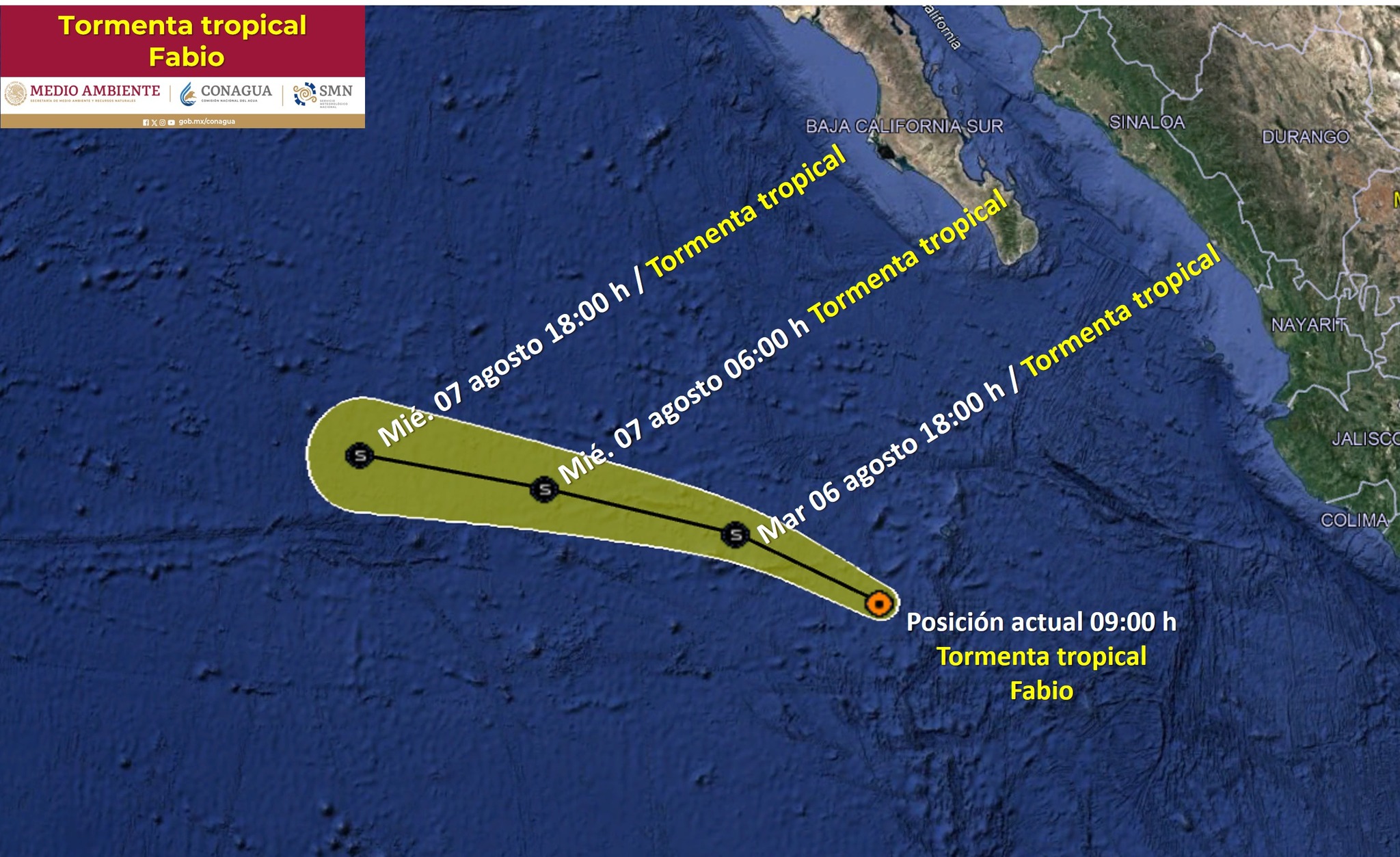 Los Cabos, B.C.S., 06 de agosto del 2024.- La Dirección Municipal de Protección Civil que encabeza Leticia Rivera Leggs, informa los efectos y el desarrollo de la tormenta tropical “Fabio”, la cual se localizó la mañana de este martes a 825 km al oeste de Manzanillo, Colima, y a 610 km al sur-suroeste de Cabo San Lucas.