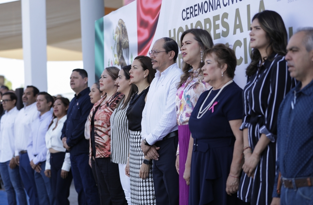 La Presidenta Municipal, Milena Quiroga Romero, encabezó la primera ceremonia de honores a la bandera del H. XVIII Ayuntamiento de La Paz, en donde reiteró su agradecimiento a los ciudadanos que la refrendaron al frente de la administración, asimismo, reconoció a la base trabajadora como pieza fundamental de los logros obtenidos durante los primeros tres años.