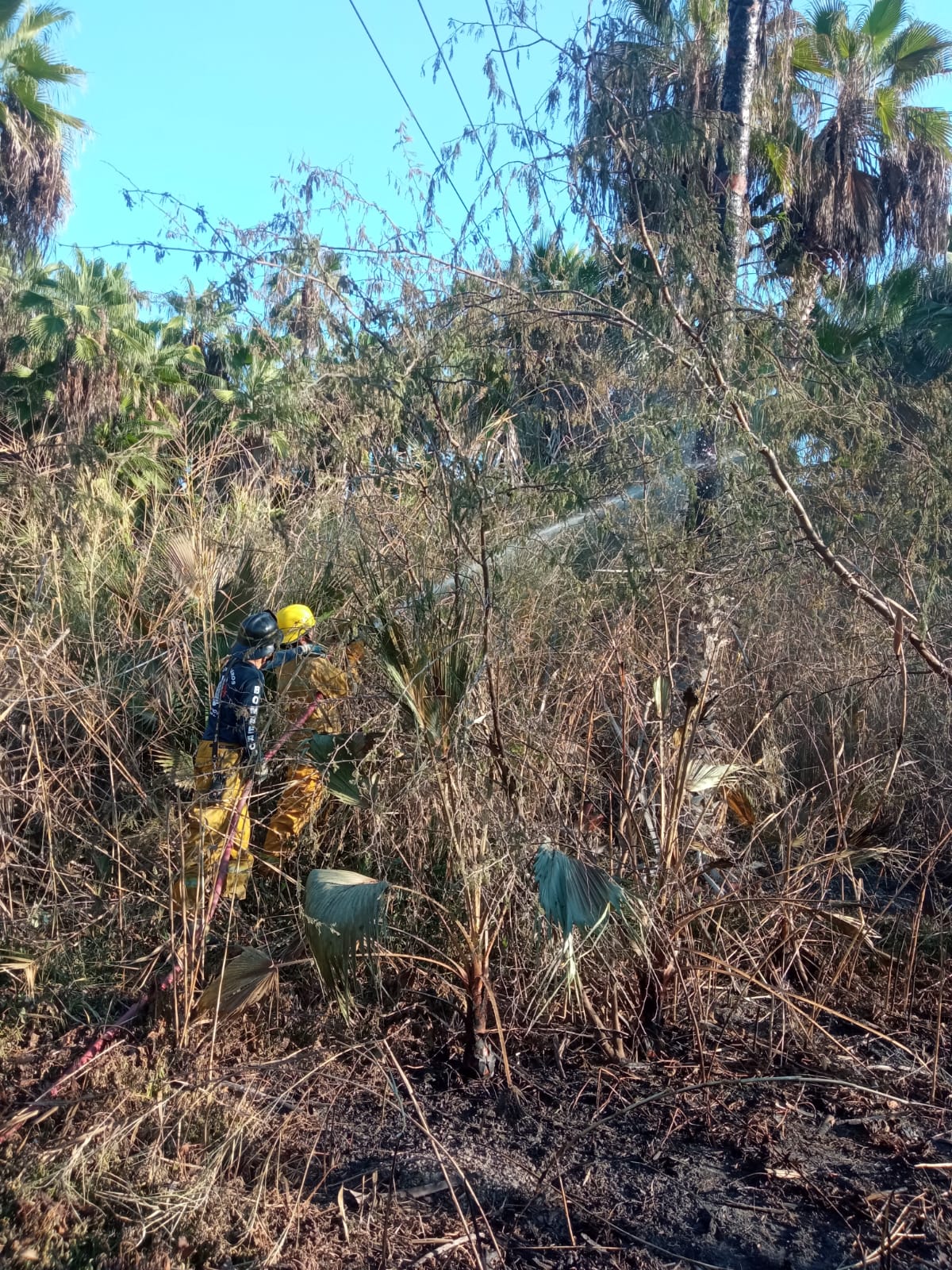 Todos Santos, BCS, 22 de octubre de 2024.- Elementos del cuerpo de bomberos de Todos Santos lograron controlar a tiempo varios pequeños focos de incendio que se habían generado en la zona de La Poza debido a las altas temperaturas y al fuerte viento.