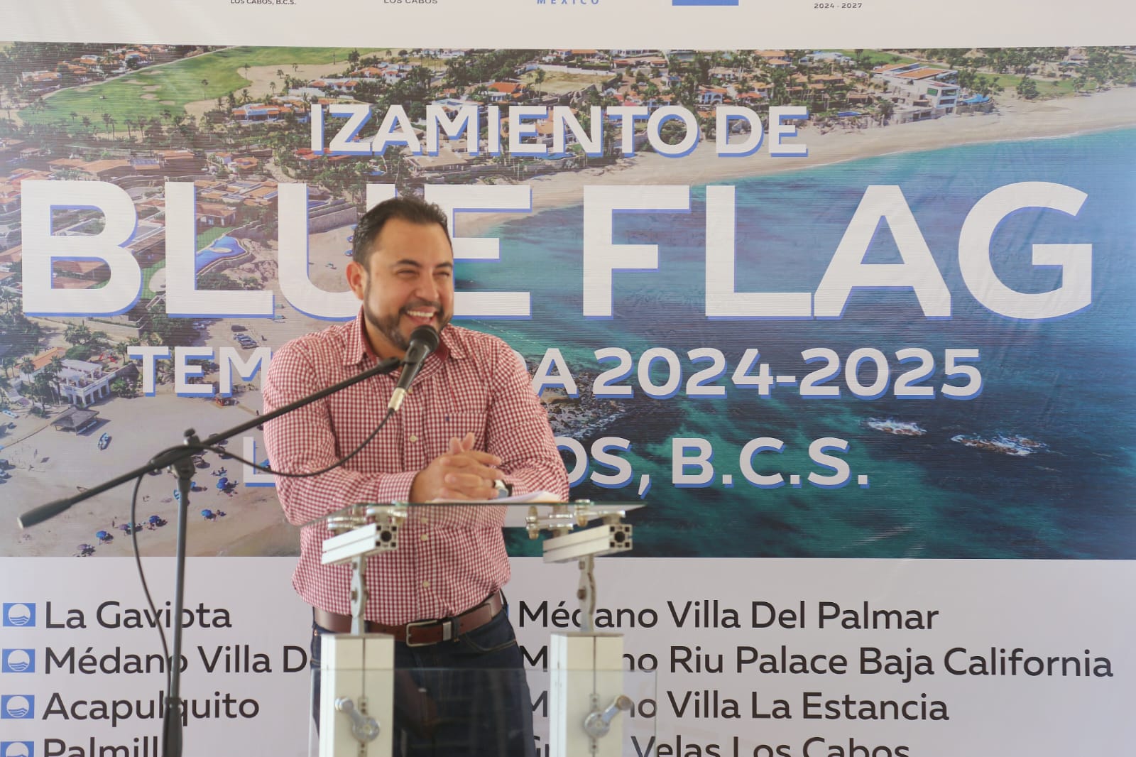Cabo San Lucas, Baja California Sur.- El alcalde Christian Agúndez Gómez encabezó el izamiento de la bandera Blue Flag de la temporada 2024-2025 en playa El Chileno. Lo anterior significa el compromiso del H. XV Ayuntamiento de Los Cabos con la sustentabilidad, el cuidado ambiental y el turismo responsable.