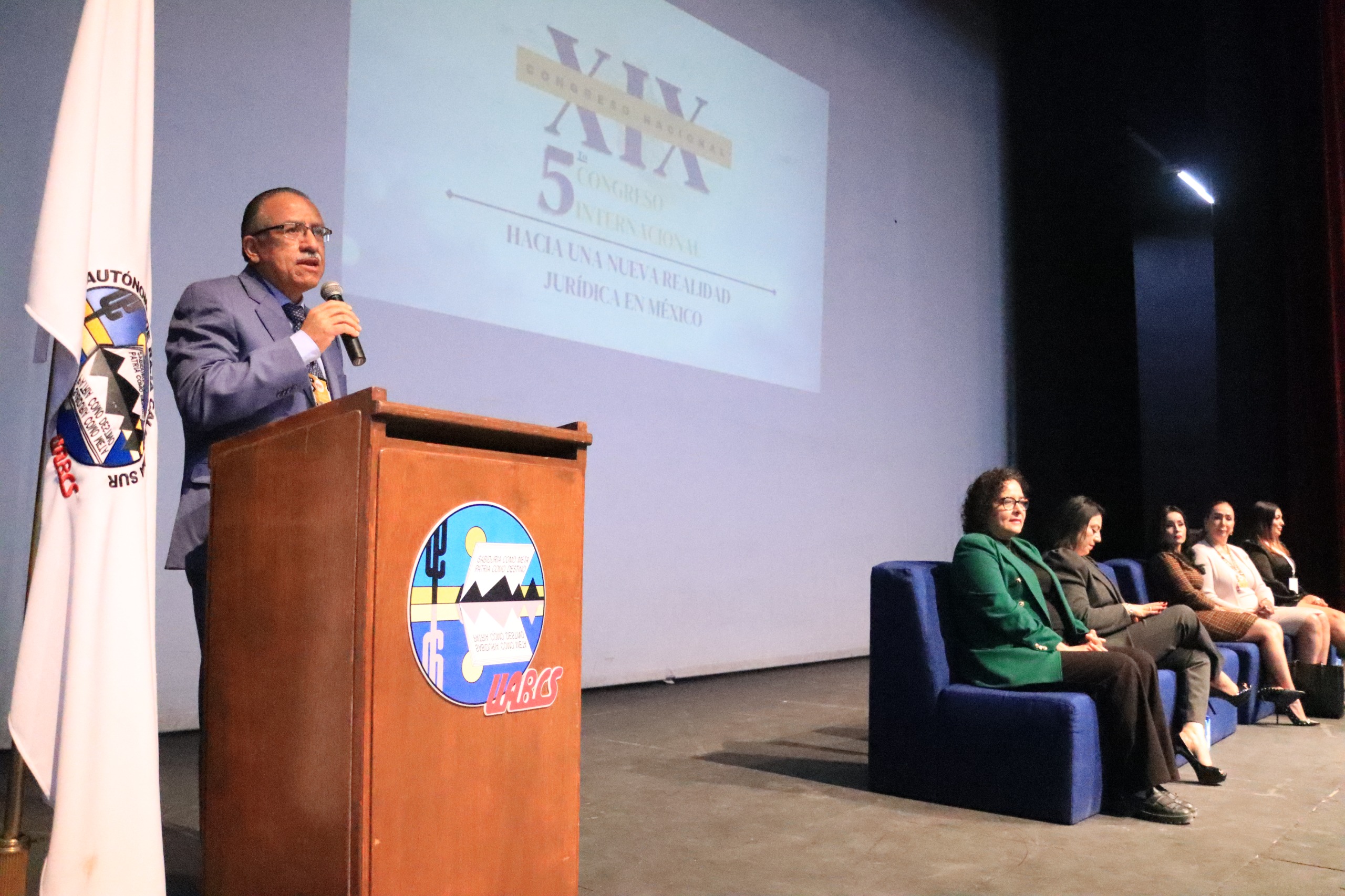 Al inaugurar los trabajos del XIX Congreso Nacional y V Internacional de Derecho, el rector de la Universidad Autónoma de Baja California Sur, Dr. Dante Salgado González, destacó la relevancia de generar espacios desde la academia para reflexionar y dialogar sobre los desafíos actuales del marco jurídico en el país.