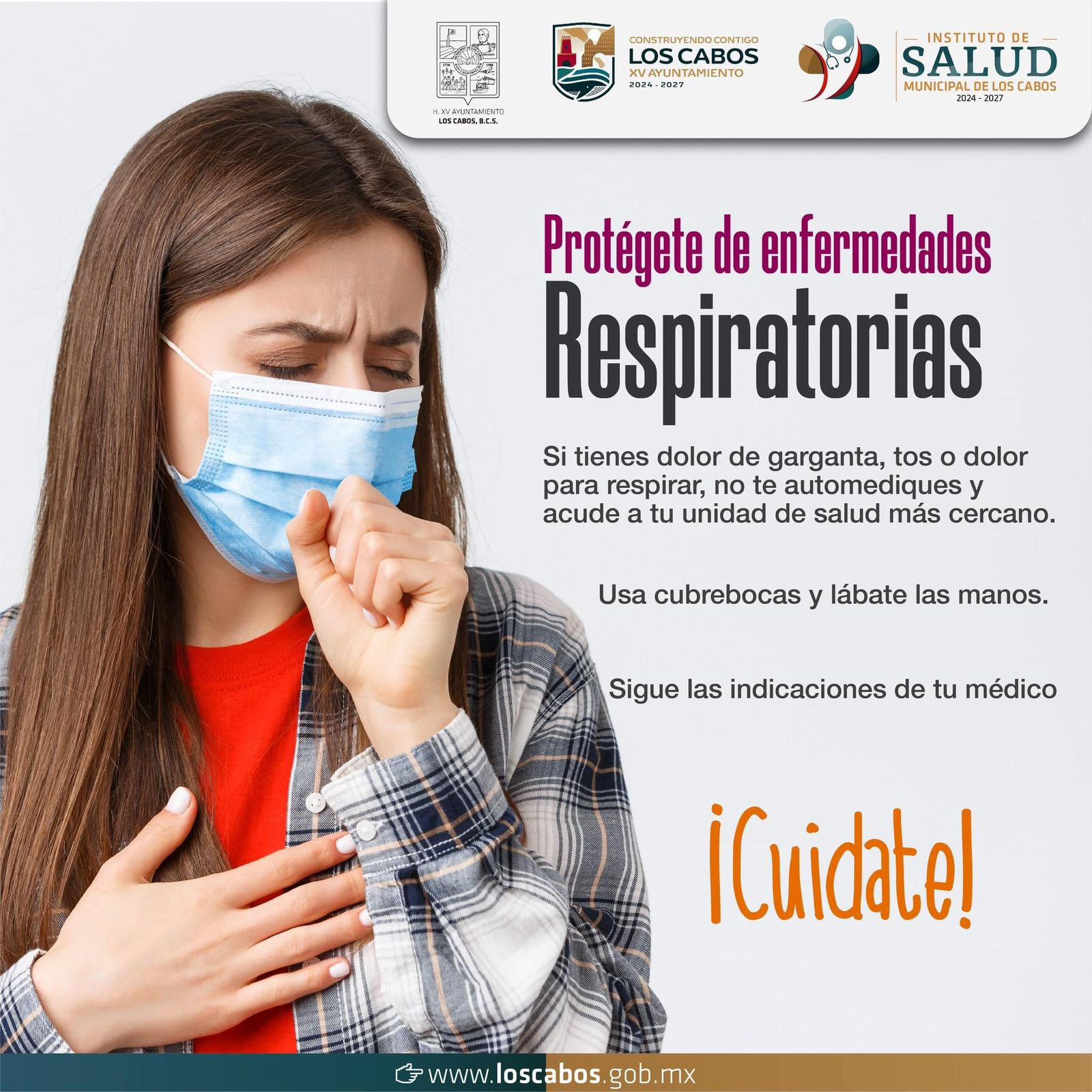 Los Cabos, Baja California Sur.- La Dirección Municipal de Salud de Los Cabos hizo un llamado a la población para que tome medidas preventivas y proteja su salud frente a las enfermedades respiratorias que se intensifican durante esta temporada.