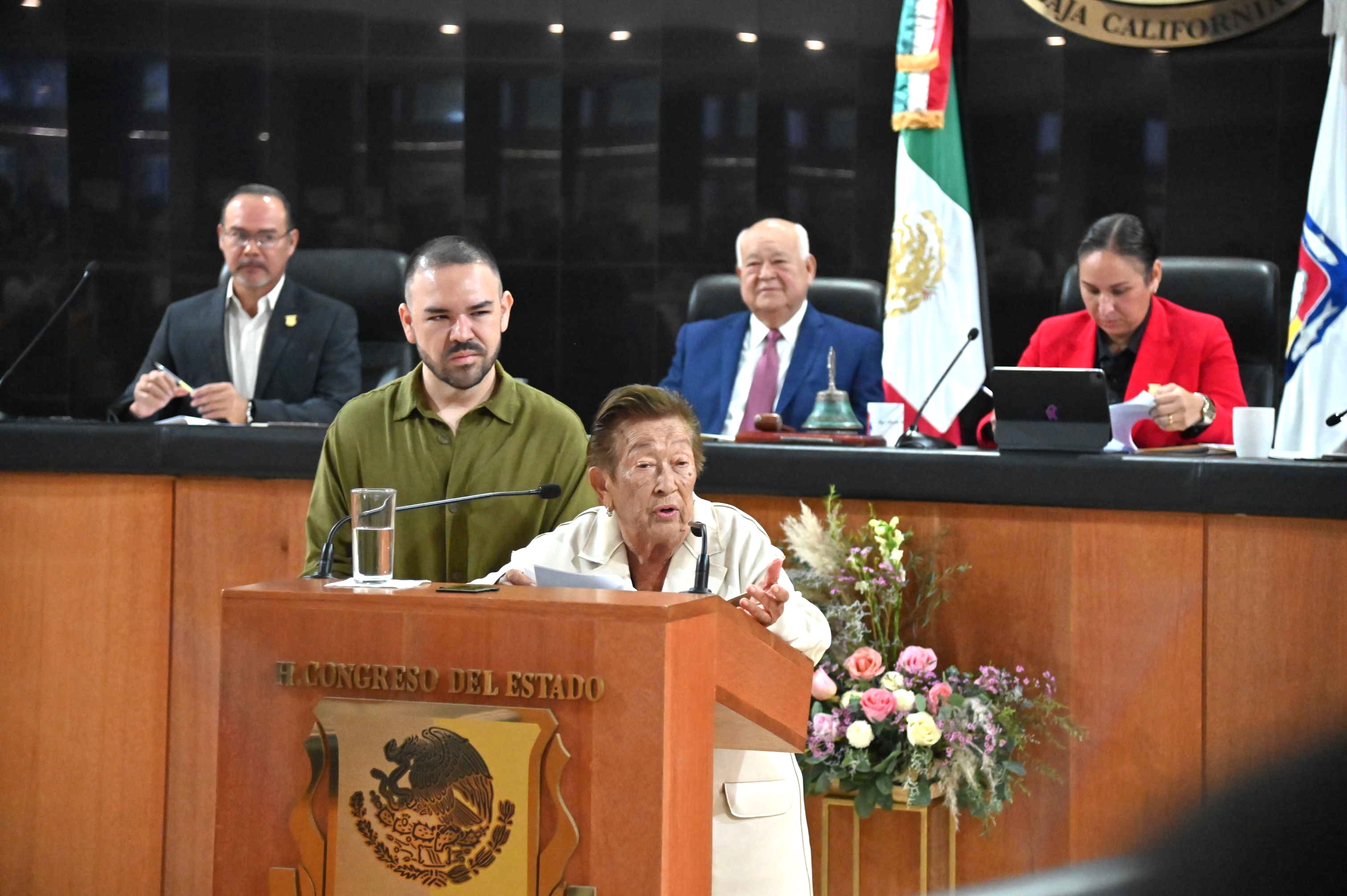 En representación de la sociedad civil, el Profesor Eliseo Medina Arciniega, decano del ramo educativo, afirmó en tribuna que la y los constituyentes “Al sumar sus inteligencias y sus experiencias, lograron aportar a la comunidad, el documento legal que norma, la vida pública y privada de la sociedad, y con ello, “Se hicieron merecedores, también a que sus nombres se queden grabados en las gloriosas páginas de nuestra historia”.