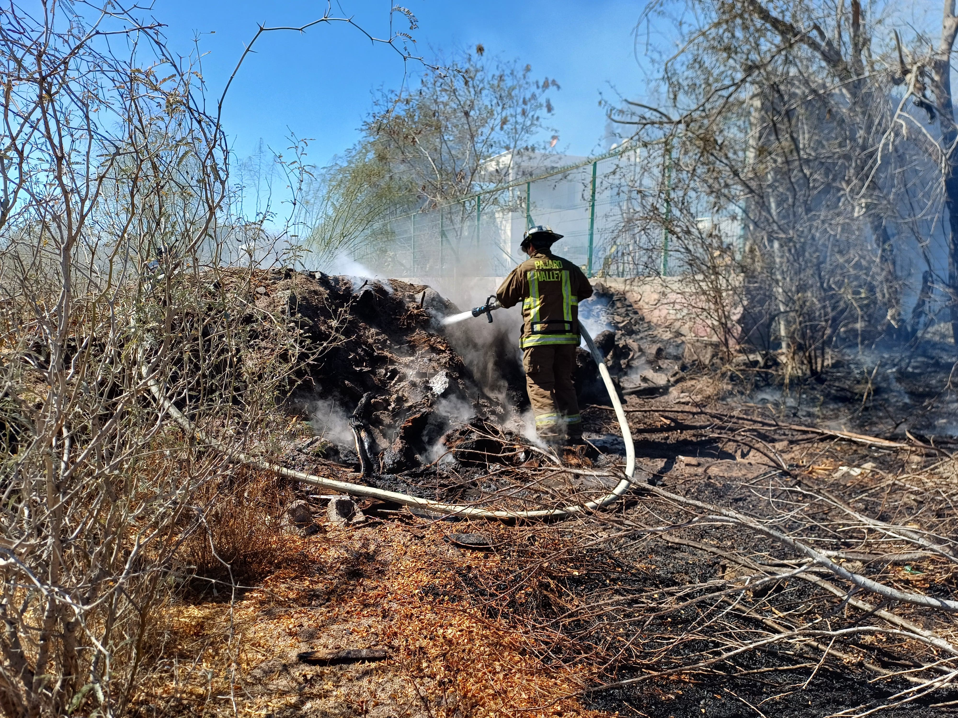 La Paz, Baja California Sur, a 12 de febrero de 2025.- Un conato de incendio movilizó a elementos del Cuerpo de Bomberos y de la Policía Municipal en la colonia Ampliación El Centenario de esta ciudad.