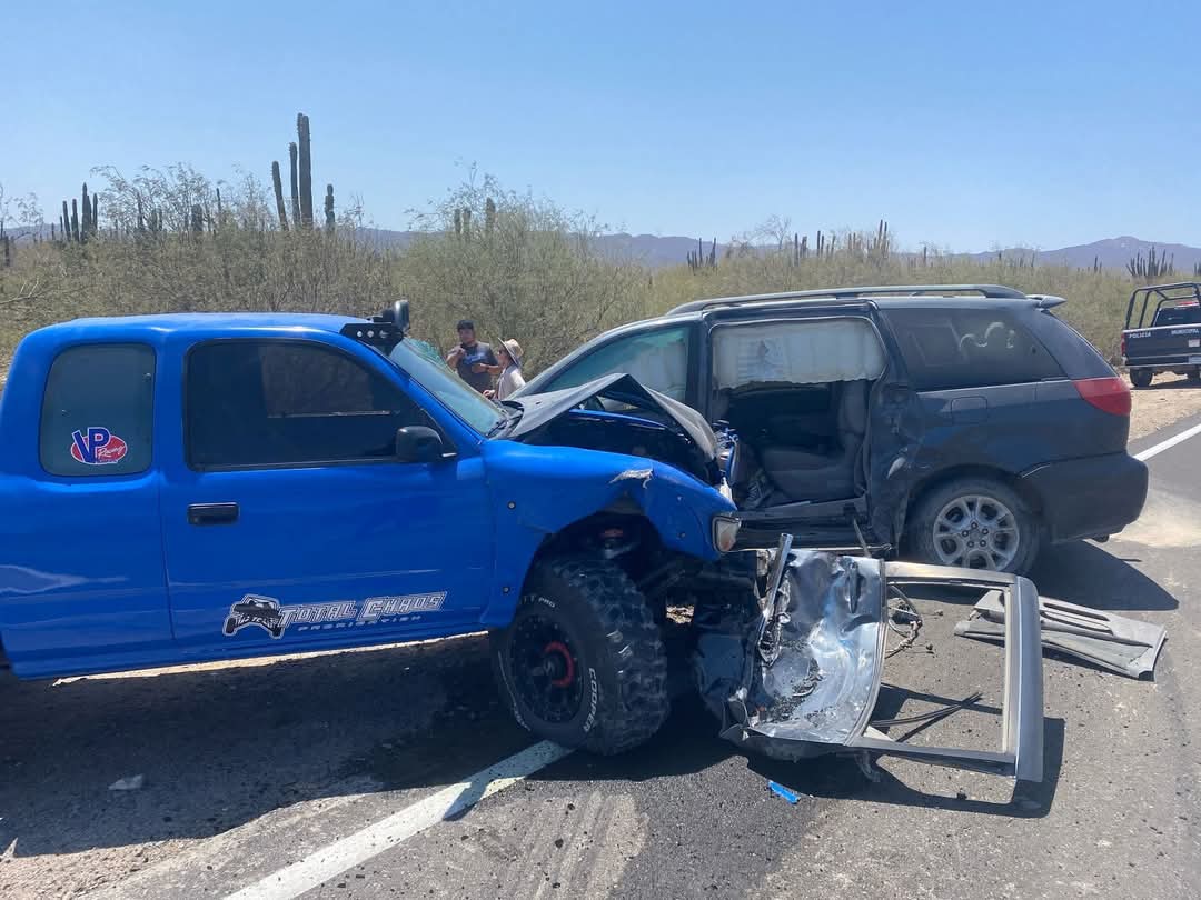 Los Planes, B.C.S.- Un choque entre dos vehículos se registró la tarde del pasado viernes, aproximadamente a las 13:00 horas, en el kilómetro 37 de la carretera que conecta La Paz con la comunidad de Los Planes. A pesar de la aparatosa colisión, no se reportaron personas con lesiones de gravedad que requirieran traslado hospitalario.