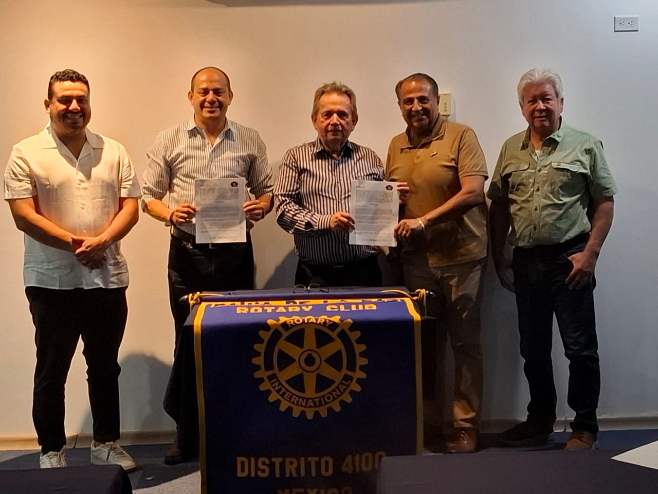 La firma del convenio se efectuó en la sesión 1504, siendo moderador, el secretario ejecutivo de Rotary, bahía La Paz.