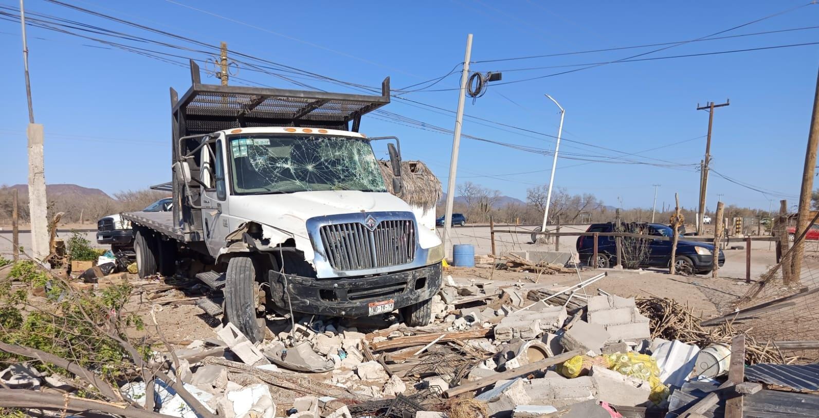 Los Cabos, B.C.S., 12 de junio de 2025. — La tarde del pasado miercoles se registró un accidente vehicular en la carretera Transpeninsular, a la altura de la entrada a la colonia La Pasión, cuando un camión de carga se impactó contra un objeto fijo, ocasionando daños a un establecimiento comercial.