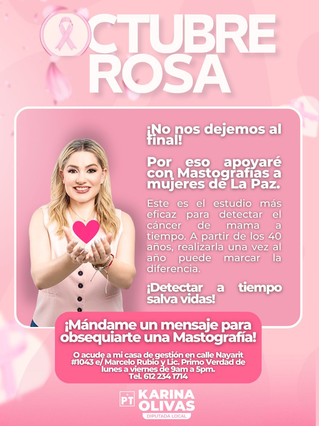 “Este programa nace desde el corazón y con un mensaje muy claro: no te dejes para después. La prevención salva vidas, pero también es importante acompañar la recuperación emocional y la reconstrucción de la autoestima de las mujeres que han librado esta batalla”, expresó la Diputada Karina Olivas Parra.