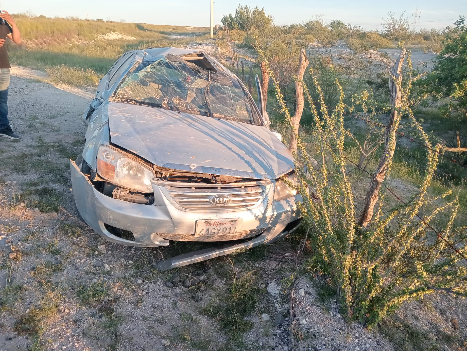 Los Dolores, B.C.S., 26 de octubre de 2025. — Un vehículo quedó fuera de la cinta asfáltica en el kilómetro 147 de la carretera transpeninsular, en el tramo entre La Paz y Ciudad Constitución, luego de que el conductor perdiera el control y el automóvil diera dos vueltas antes de detenerse junto al cerco perimetral.