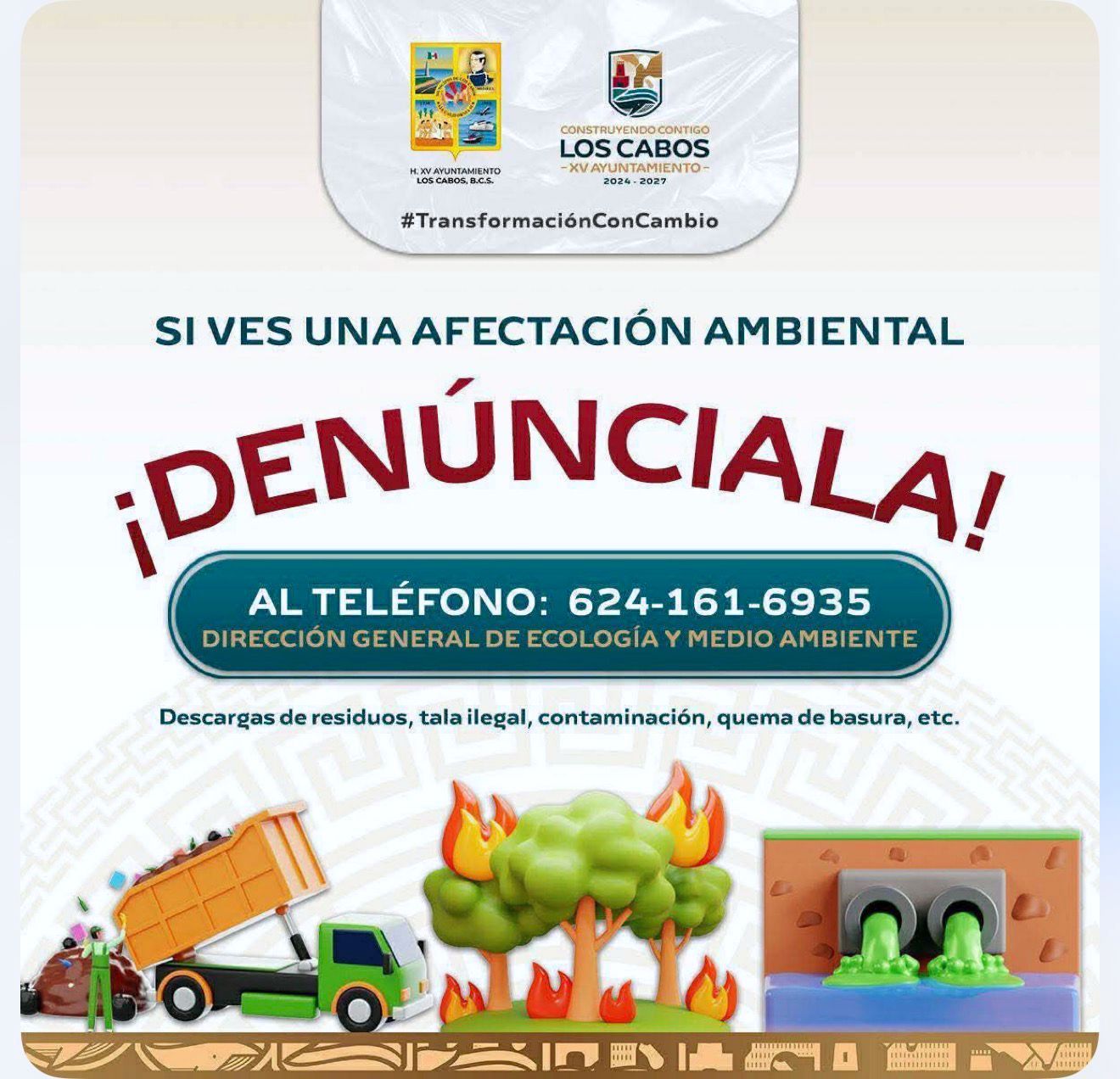 Finalmente, la Dirección General de Ecología y Medio Ambiente reiteró que la protección del patrimonio natural de Los Cabos es una responsabilidad compartida entre gobierno y sociedad, por lo que exhortó a la población a hacer uso responsable de los canales de denuncia y contribuir a mantener un municipio limpio y saludable para las presentes y futuras generaciones.