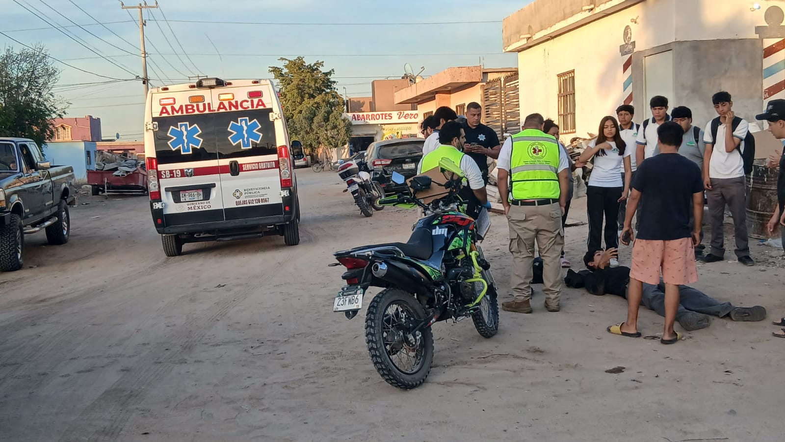 La Paz, Baja California Sur.– La tarde de este jueves 23 de abril se registró un accidente vehicular en la colonia La Pitahaya, donde una motocicleta y un automóvil colisionaron en el cruce de las calles Lotita y Lolita.
